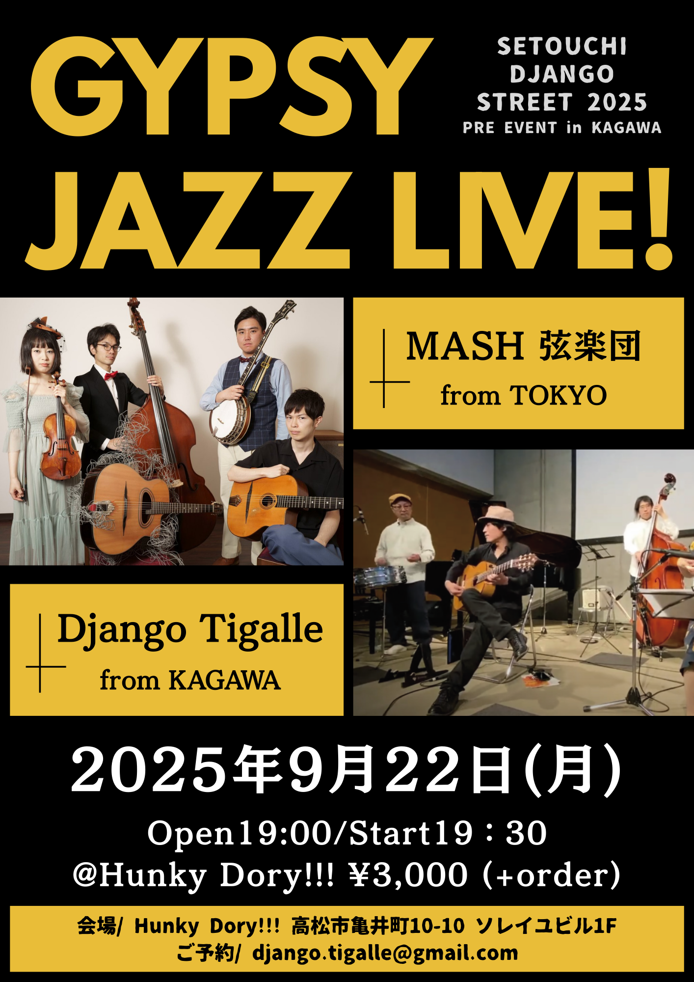 9/22 MASH弦楽団 & Django Tigalleライブ(2025/09/04)